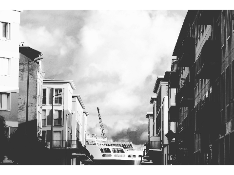 du flou... de l'argentique... du surréalisme, un paquebot dans la ville...